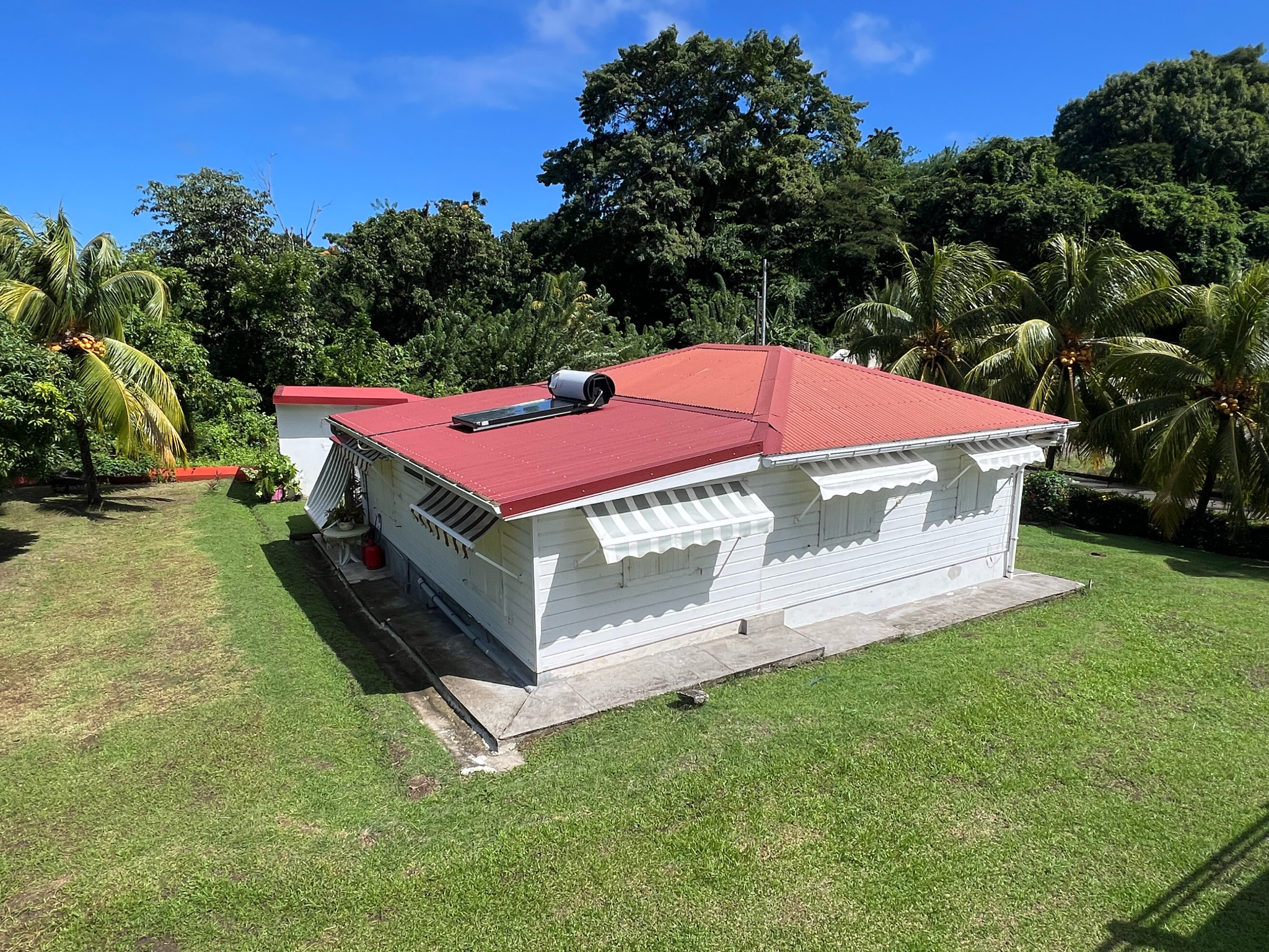 Dans un quartier calme et arboré, cette propriété de 1 868 m² offre un fort potentiel locatif ou familial. Idéalement située, elle se trouve à seulement 15 minutes du bourg du François et du Vauclin.